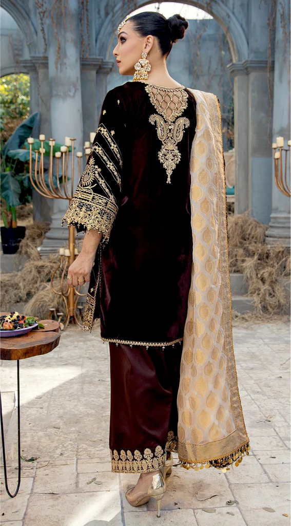 Embroidered Velvet Front Panel Side Spray
