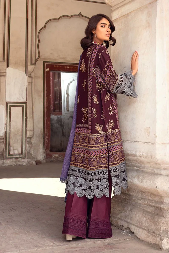| Fabric: A combination we all know and love - this aubergine, amethyst, flaxen and seal grey linen shirt is printed with a fusion of motifs inspired by Mughal architecture and painting. It comes with an intricately embroidered neckline on organza in shades of gold and tilla on an amethyst base. The same shades dance over the linen dupatta, printed with geometric designs. Printed Shirt Front On Linen 1.20 meters Printed Shirt Back On Linen 1.20 meters Printed Sleeves On Linen 0.65 meter Embroidered Neck On Organza Printed Dupatta On Linen 2.5 meters |
