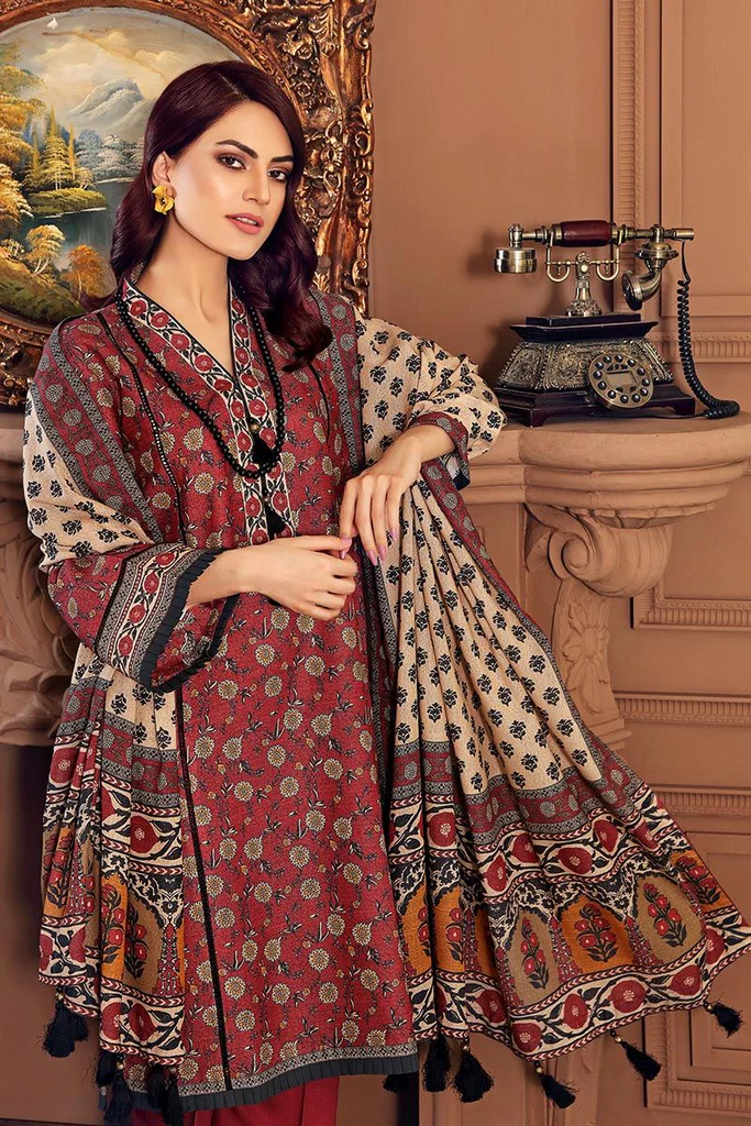 | Fabric: Digital Printed Karandi Dupatta – 2.5 meters Digital Printed Karandi Shirt – 3 meters Dyed Linen Trouser – 2.5 meters |