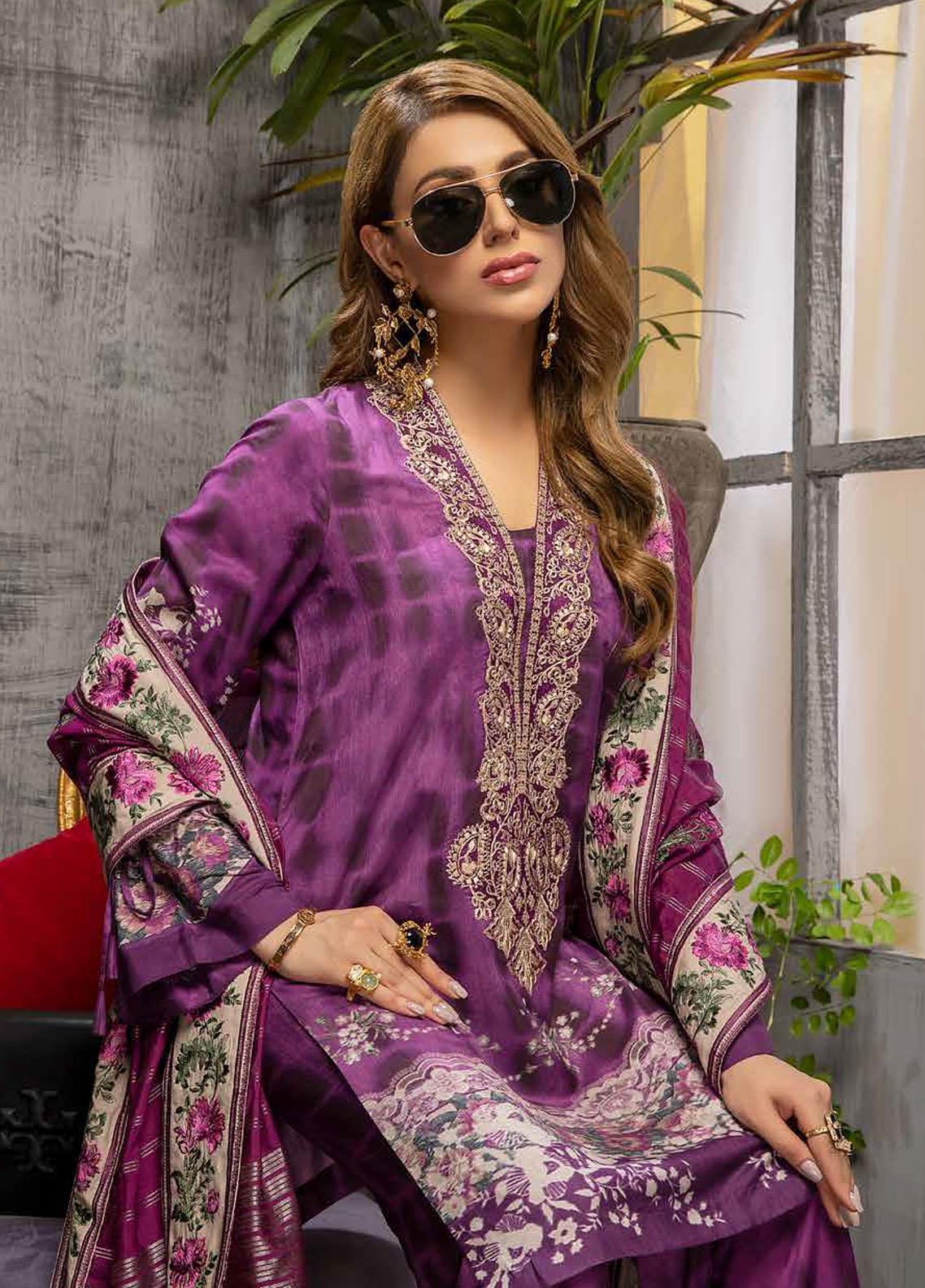 Charizma Embroidered Viscose Silk Suits Unstitched 3 Piece CRZ21VW CVS-06 Berry Smooth - Winter Collection