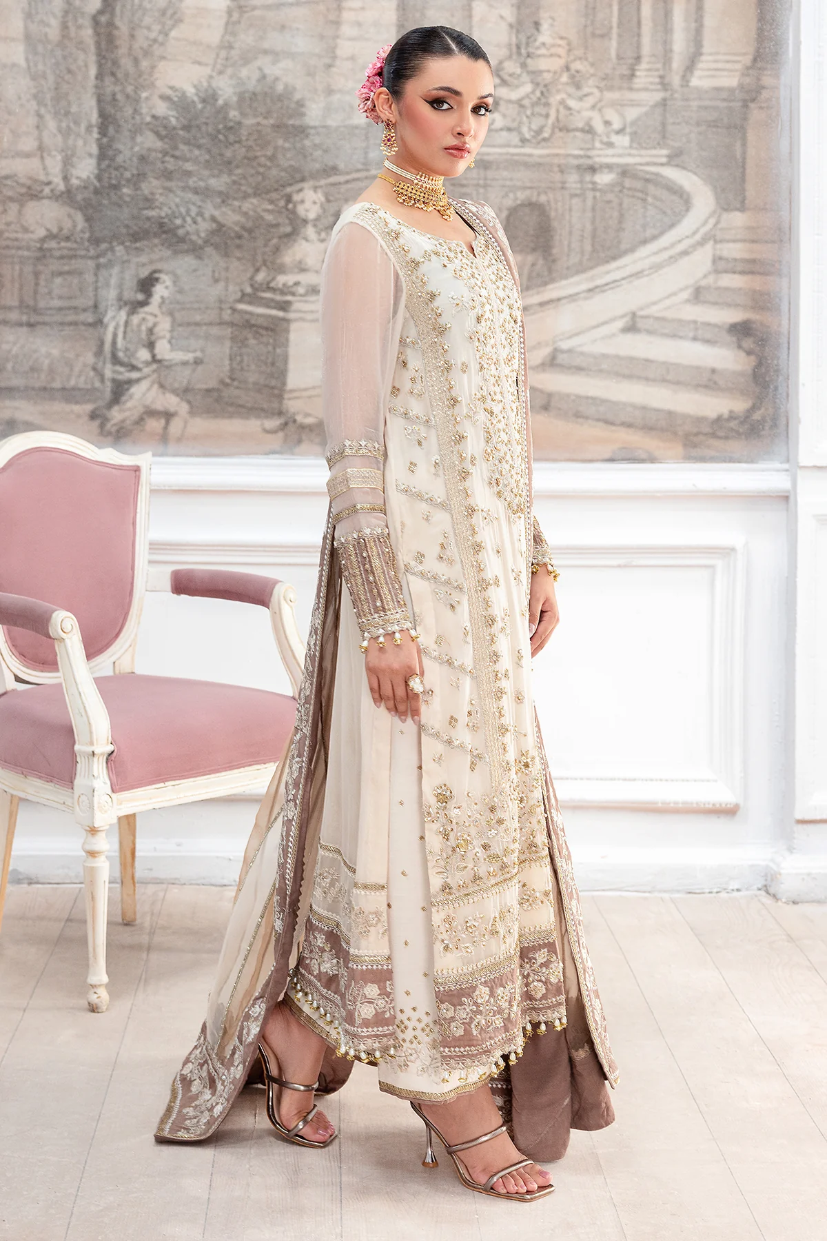 Shirt: Embroidered & Adda Work Dyed Chiffon Front 1 Meter Dyed Chiffon Back and Sleeves 2 Meter Embroidered & Adda Work Front Daman 30 inch Embroidered & Adda Work Front Neck 1 Pcs Embroidered Back Patti 30 inch Embroidered & Adda Work Front Daman 30 inch Embroidered Back Patti 30 inch Embroidered & Adda Work Sleeves Patti 1 Meter Embroidered Sleeves Patti 1 Meter Dyed Inner Shirt 2.25 Meter Trouser: Embroidered Dyed Raw Silk Trouser 2.50 Meter Dupatta: Embroidered Dupatta Patti 8 Meter Embroidered Printed Organza Dupatta 2.50 Meter