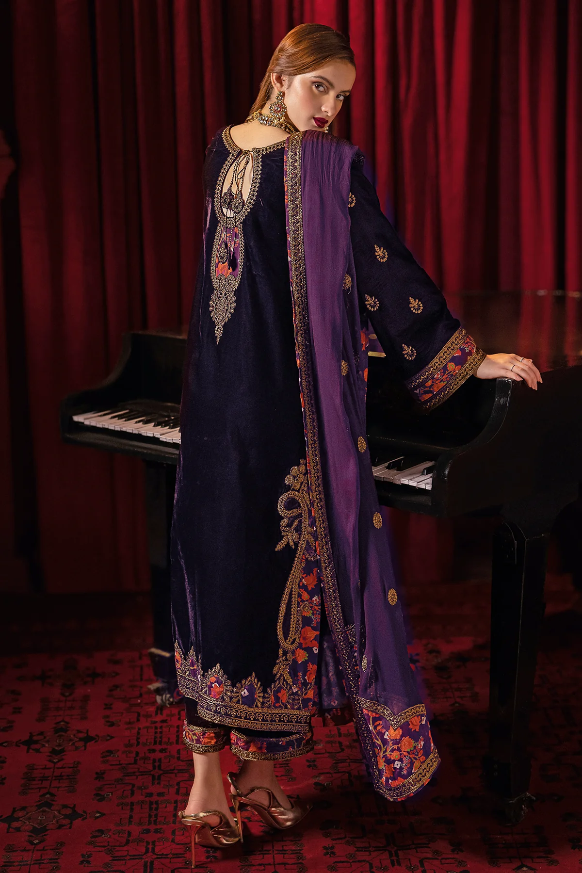Embroidery Dyed Velvet Front 1.25 Mtr