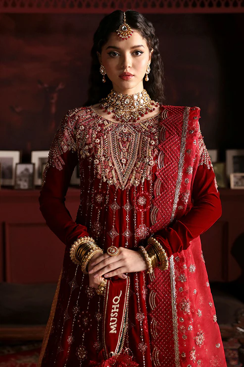 -Embroidered, sequined and hand embellished velvet for front yoke