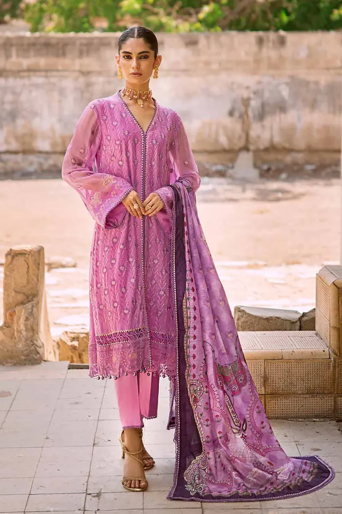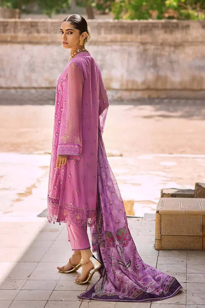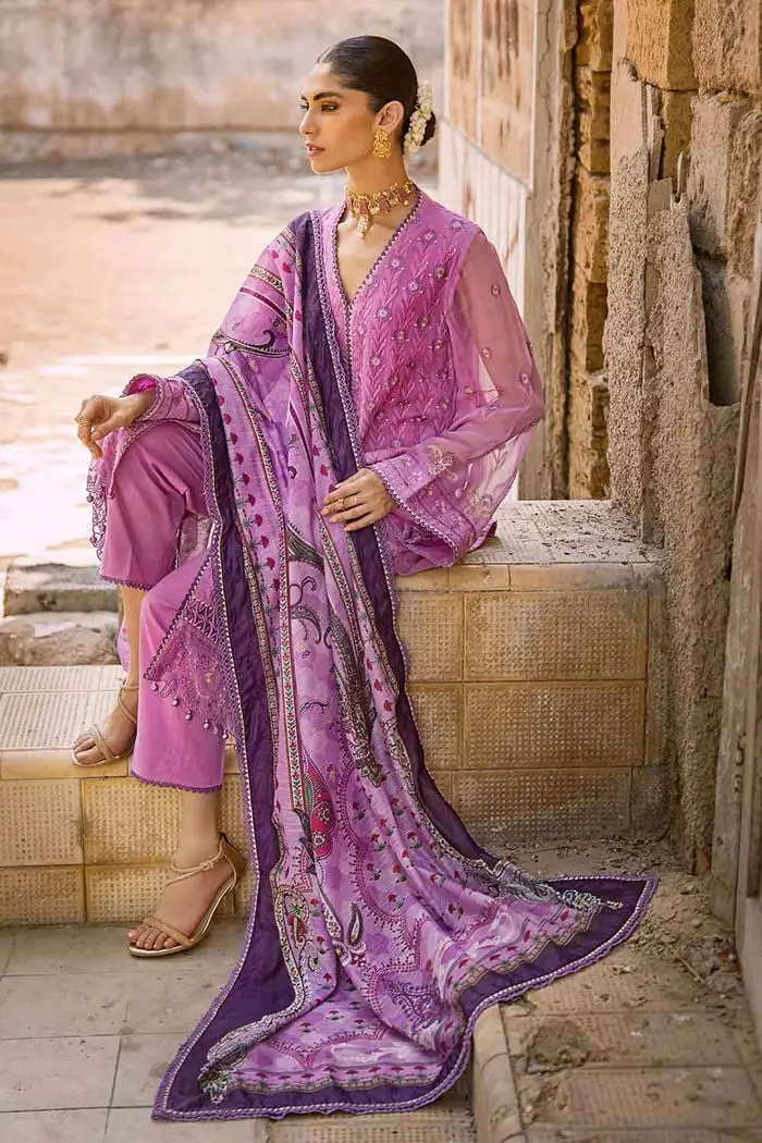 | Fabric: Digital Printed Paper Cotton Dupatta – 2.5 meters Embroidered Chiffon Shirt with Embroidered Borders for Front & Back – 2.76 meters Trouser – 2.50 meters Dyed Inner -- 1.65 meters |