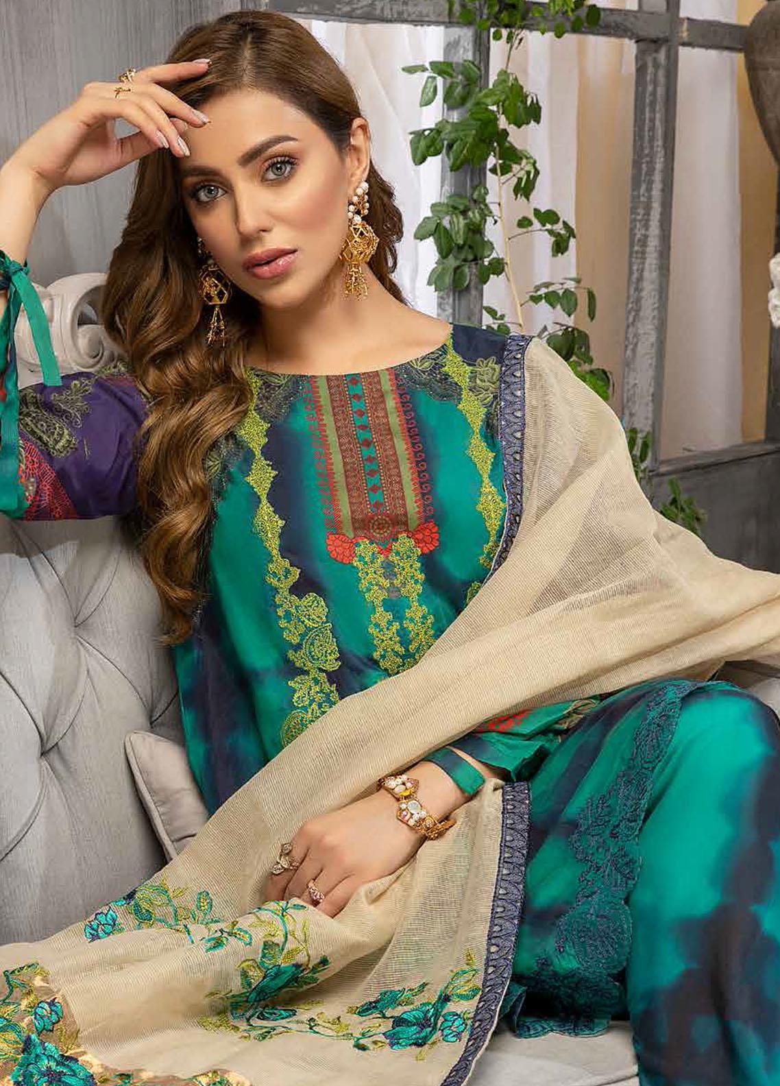 Charizma Embroidered Viscose Silk Suits Unstitched 3 Piece CRZ21VW CVS-05 Forest Green - Winter Collection