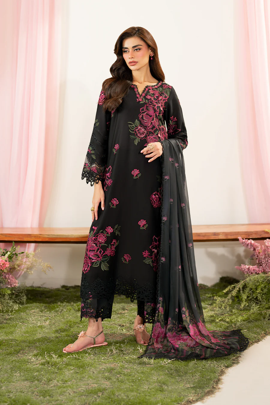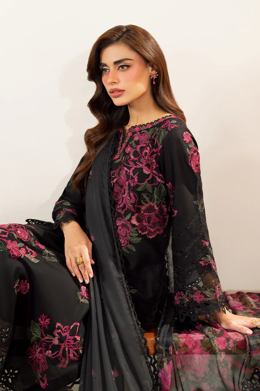Sleeves: Embroidered Textured Lawn