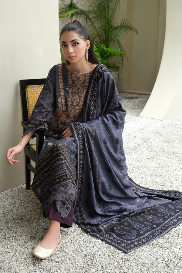 Embroidered Printed Winter Collection With Printed Shawl
