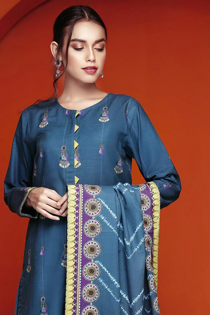 | Fabric: Digital Printed Khaddar Dupatta – 2.5 meters Digital Printed Khaddar Shirt – 1.75 meters Dyed Khaddar Trouser – 1.75 meters |