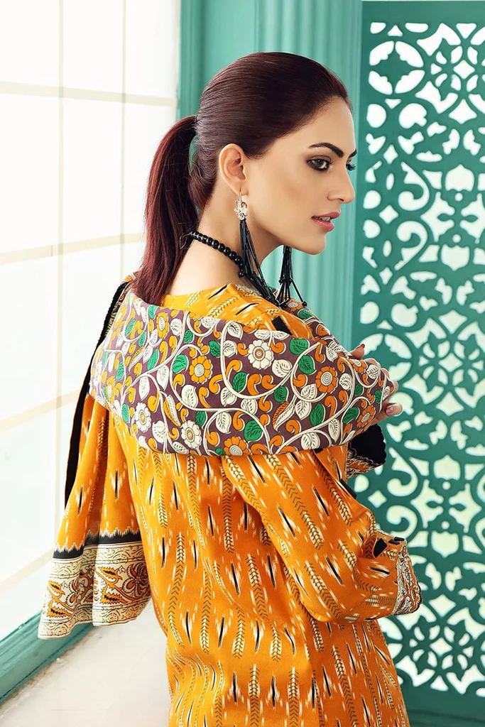 | Fabric: Printed Twill Linen Dupatta – 2.5 meters Printed Twill Linen Shirt – 1.75 meters Dyed Twill Linen Trouser – 1.75 meters |