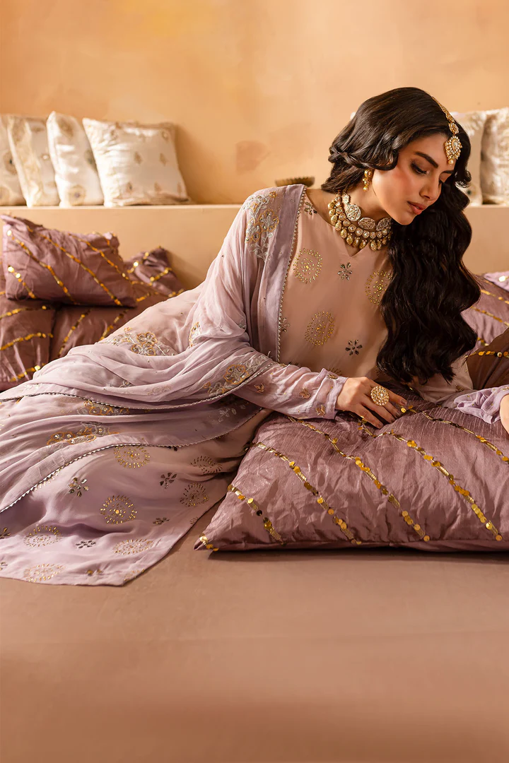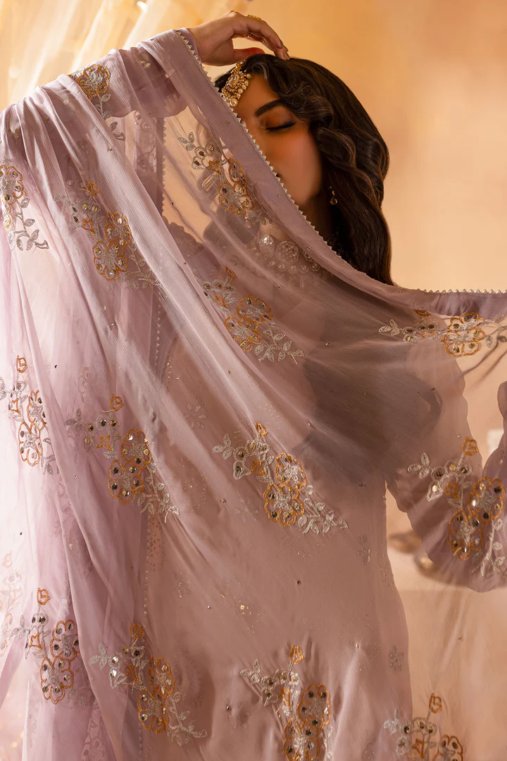 • Aari Embroidery Chiffon Dupatta With Mukeshkari