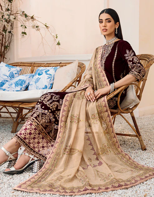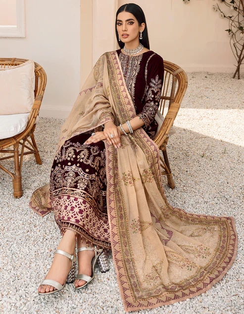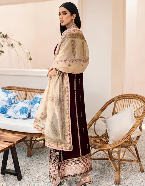 Velvet Embroidered Front and Back Daman Lace with sequins work.