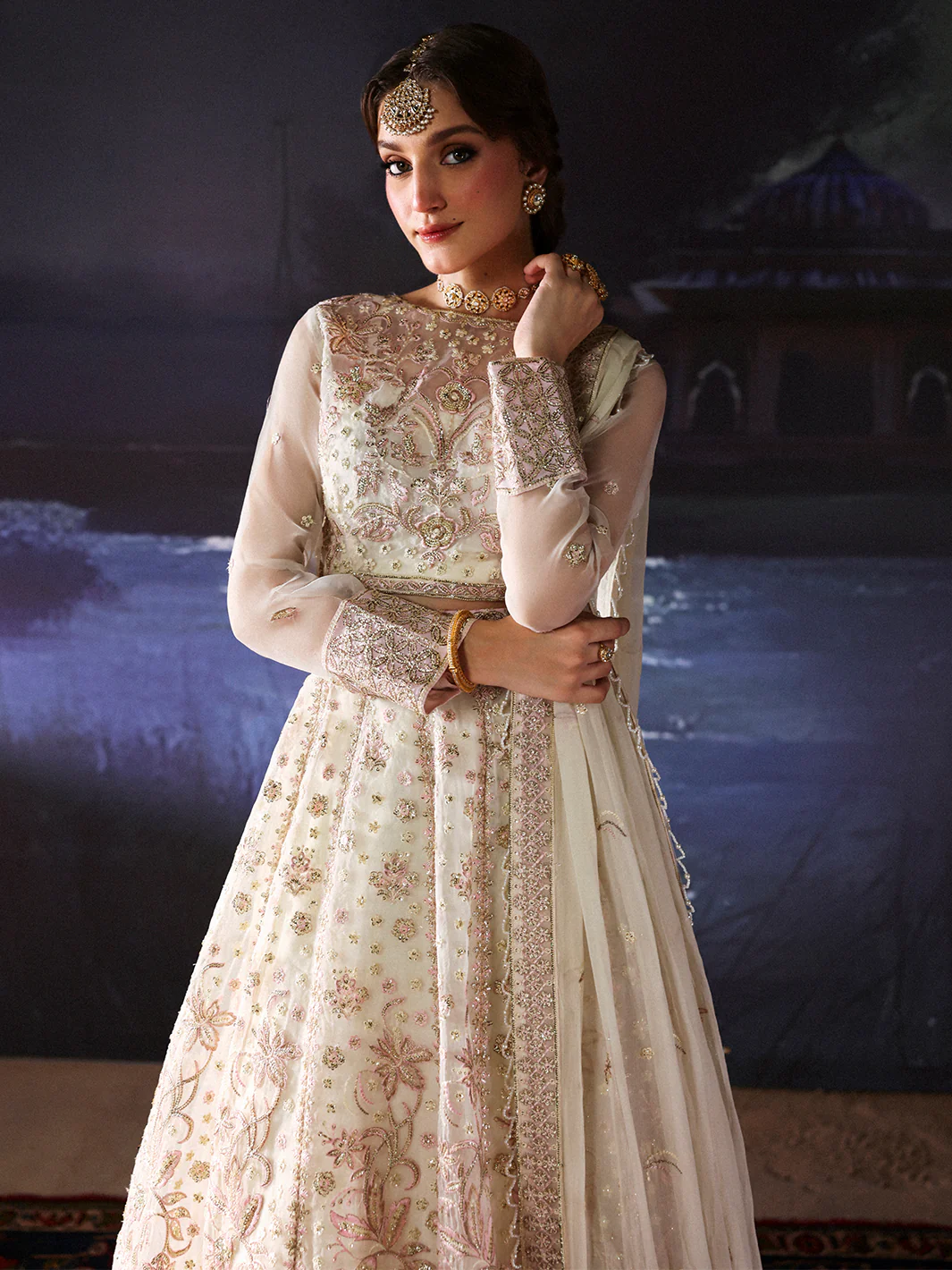 Embroidered Organza Back Pannel 7 Piece