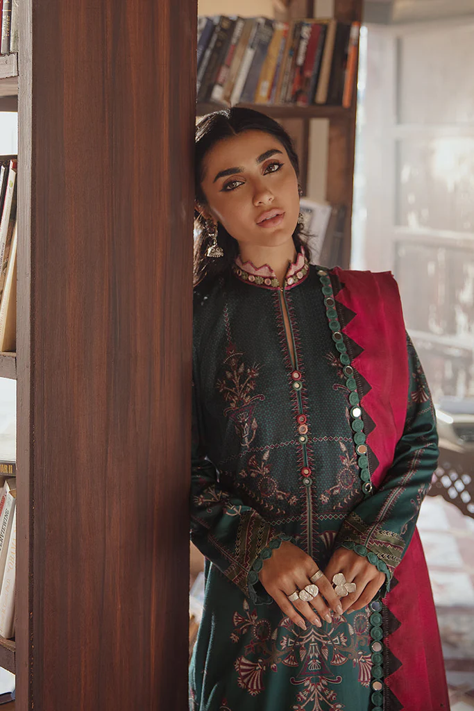GREEN AND MAGENTA! WE’RE LOVING THIS GORGEOUS COTTON SATIN OUTFIT- A FUSION OF DIGITALLY PRINTED AND EMBROIDERED SHIRT THAT COMES IN ACCOMPANIED WITH EMBROIDERED PATCHES FOR THE HEM AND SLEEVES!