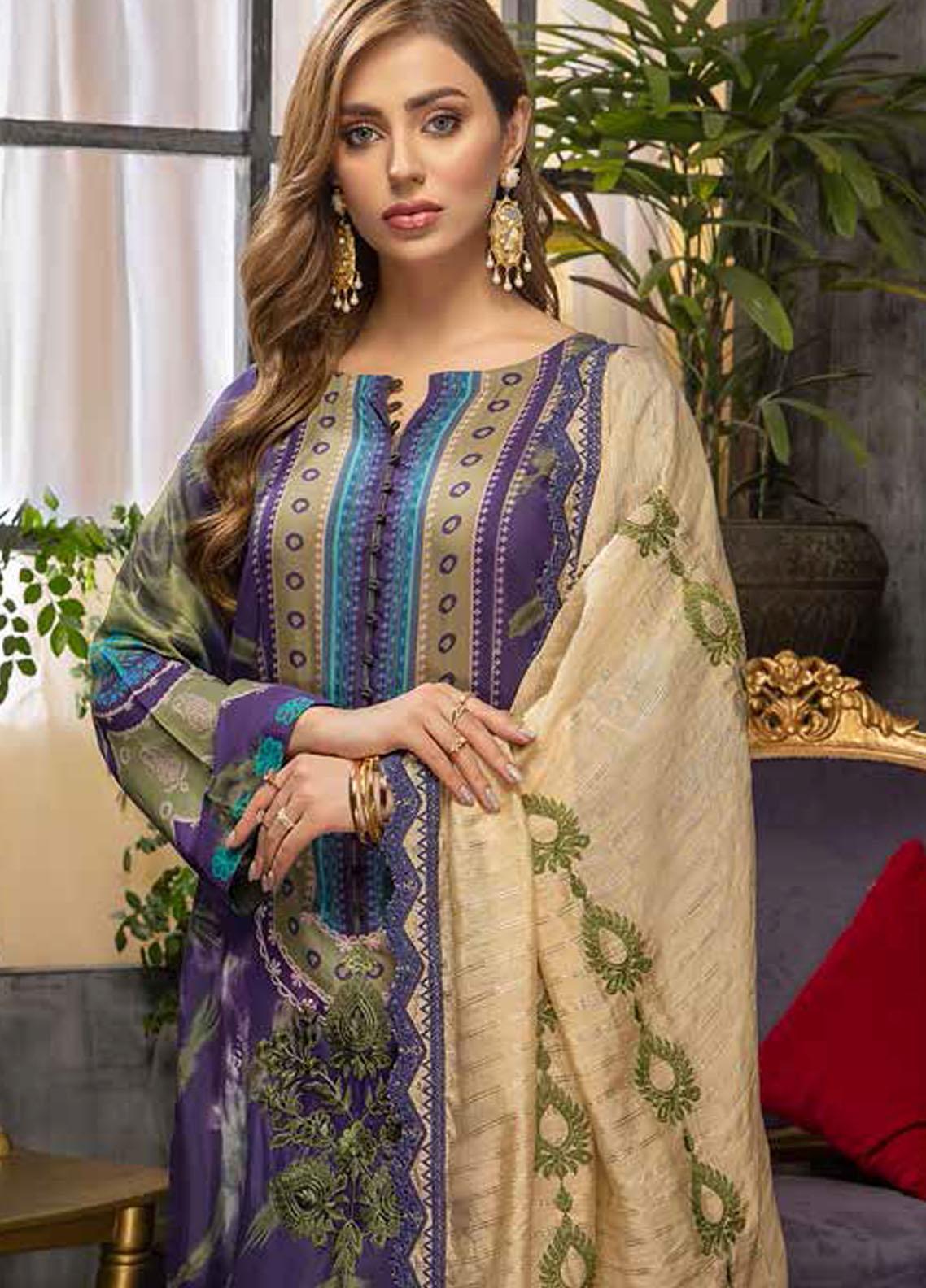 Charizma Embroidered Viscose Silk Suits Unstitched 3 Piece CRZ21VW CVS-07 Purple Haze - Winter Collection