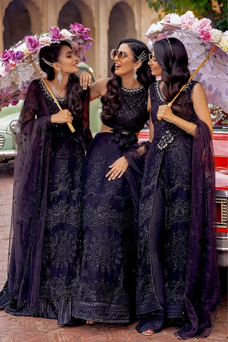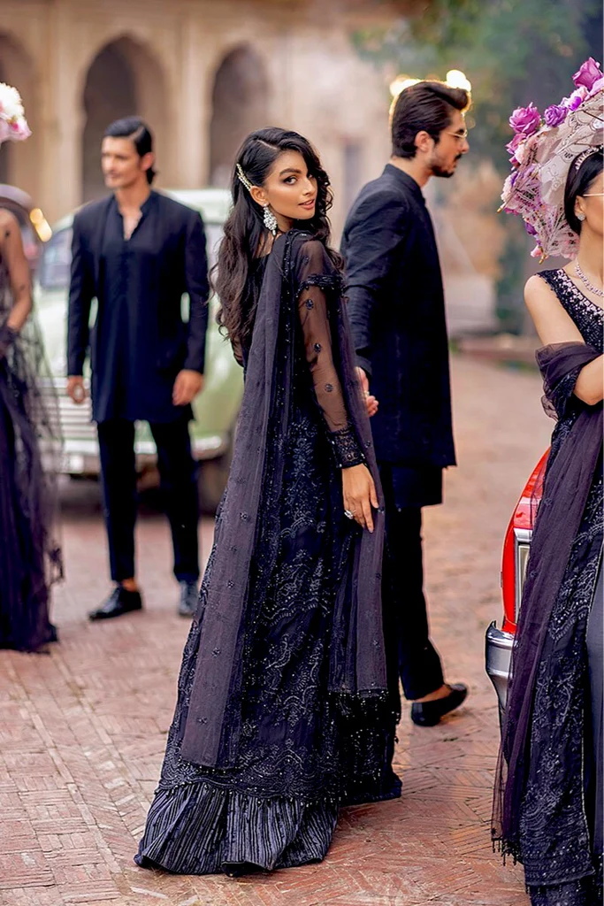 Embroidered and sequinned front yoke and dyed chiffon for back yoke