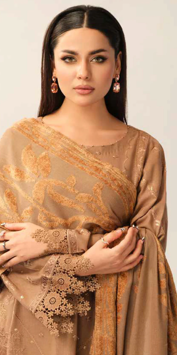 Description: Embroidered Leather Peach Collection With Embroidered Velvet Jacquard Shawls